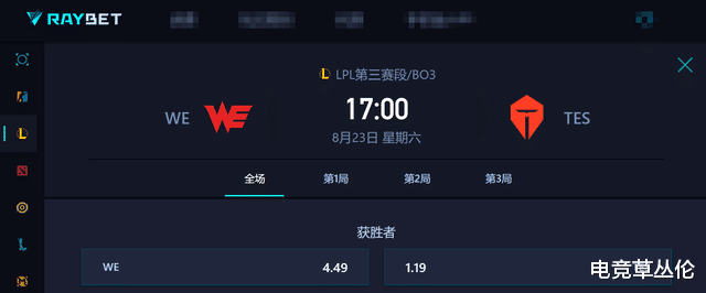 对于TES与WE的比赛,专业电竞预测机构认为WE的指数是4.49,TES的指数是1.19。WE较之TES有着明显的实力差距,本场比赛只要不爆冷,TES会笑到最后。
