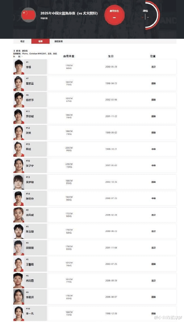 中国女篮将在陕西省体与尤文图特俱乐部进行两场热身赛,时间是9月17-18日,目前官方也已经公布了这两场热身赛的大名单:
