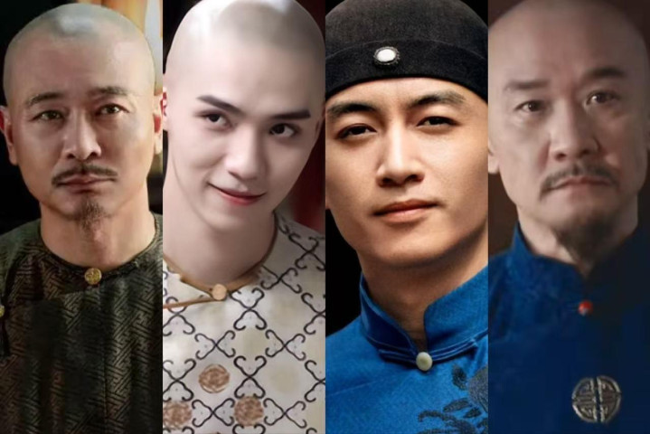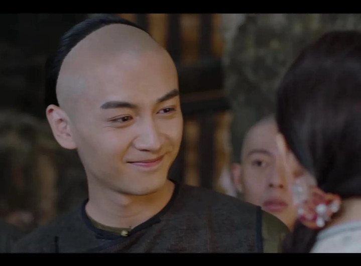 即使前额锃亮,后脑只留一小撮头发编辫,侧脸线条依然流畅。