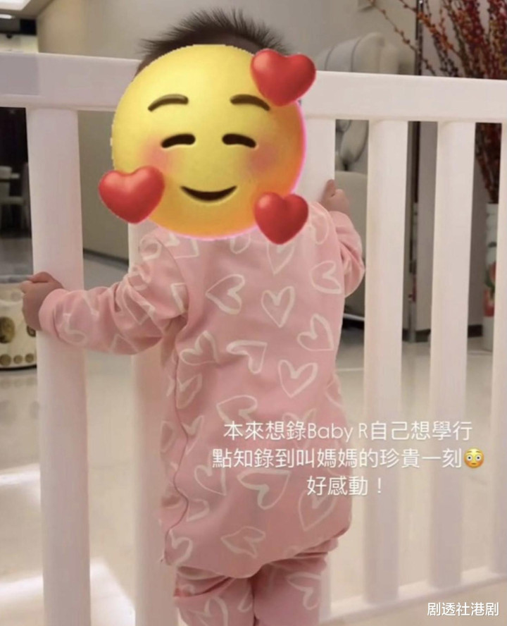 作为妈妈的何依婷贴心的为女儿遮住了样貌,想来也是不想女儿过多的暴露于人前。虽然才八个月大,小家伙已经可以扶着围栏站立,想来也是希望可以尝试自己走路。