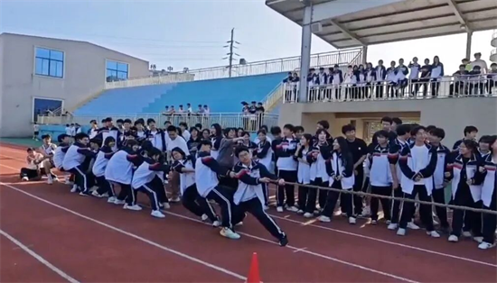 “加油!加油!”拔河比赛的现场,呐喊声震耳欲聋。同学们脚蹬实地,紧握长绳,身体后倾,用尽全力与对手展开较量。绳子中间的红线左右摇摆,牵动着每个人的心弦。这不仅是力量的角逐,更是班级向心力的凝聚,展现了一中学子“人心齐,泰山移”的豪情壮志。