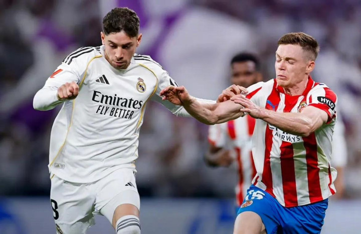 比赛第51分钟,首开纪录!巴尔韦德远射世界波破门!皇马1-0赫罗纳!