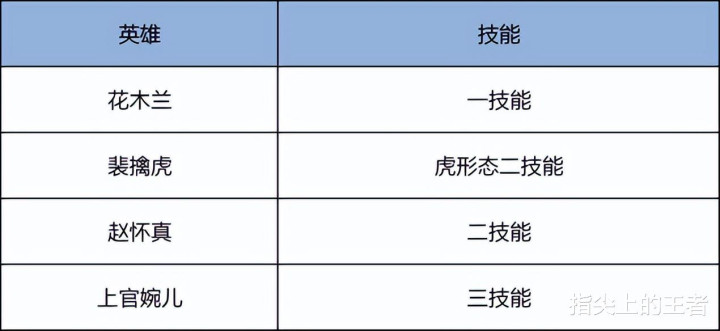收到影响的四个英雄分别是花木兰、裴擒虎、赵怀真和上官婉儿,其中影响最大的可能是裴擒虎和婉儿。