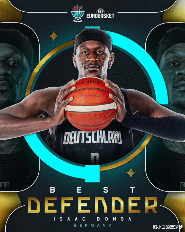艾萨克-邦加在2025年欧洲杯决赛中发挥出色,登场短短24分钟,11投8中,三分球4投全中,拿到20分5篮板4助攻1抢断1盖帽,他当选了欧洲杯FMVP,还当选了欧洲杯的最佳防守球员。