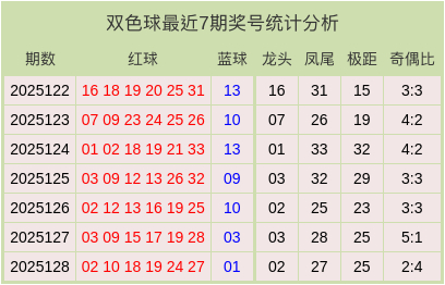双色球最近7期奖号和数据分析表