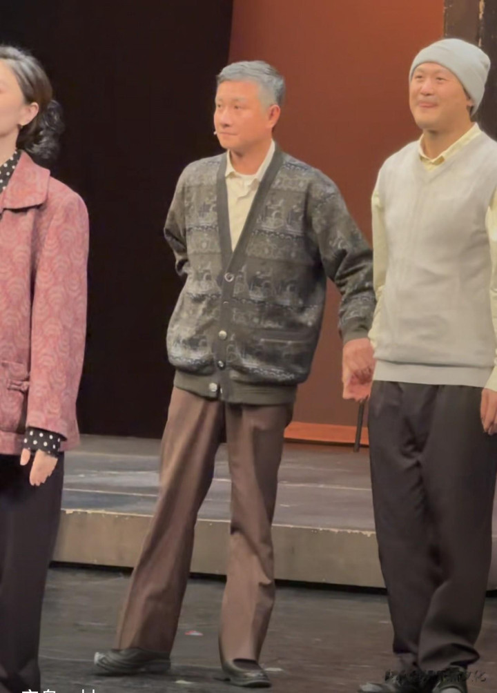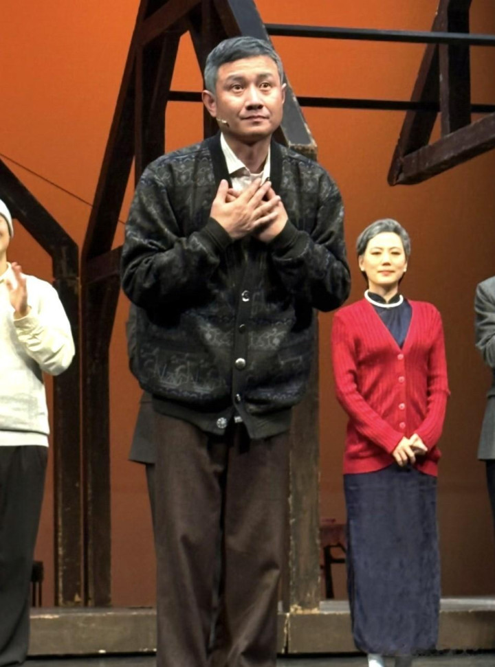 近日,他主演的话剧《宝岛一村》正在巡演,他在剧中饰演一位老年人,头发花白,穿着老头衫,脸上皱纹密布,不得不说,很有老年人的样子。